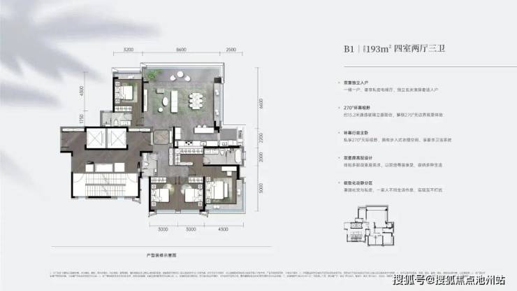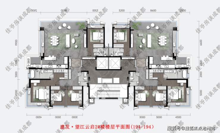 由于项目比较小,只有两栋住宅,所以户型也不多,就194㎡和228㎡两个面积段,都是套四三卫的配置。