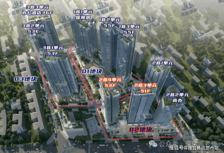 规划为3栋超高层塔楼,3栋一单元住宅174米53层,3栋二单元住宅178米53层,3栋三单元办公+酒店170米36层。