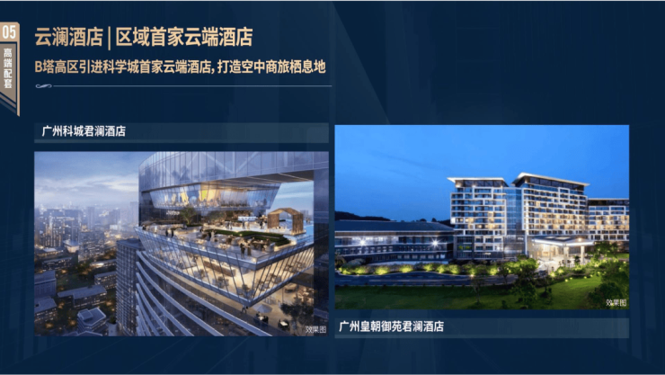 云澜酒店:科学城首家云端酒店,位于B塔高区,引进广州科城君澜酒店。