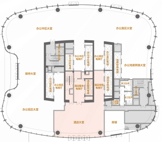首层:酒店与办公大堂分开,私密性强。