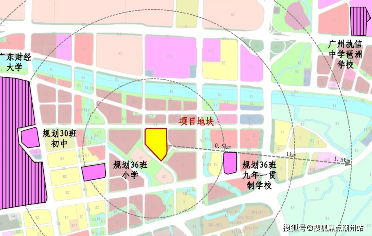 项目位于海珠区琶洲南TOD项目东侧,就隔着一个大围公园,向北跨过黄埔涌。作为广州科创中心的琶洲,就属于天选之子,与珠江新城,金融城和鱼珠隔江相望; 而且海珠本身就是核心区,学校,商业,文娱各项配套齐全且成熟,不存在几十公里造“飞地”的情况。