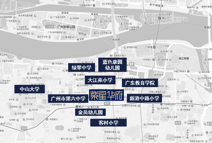 中山大学是国家211、985工程重点大学,广东省综合实力最好的大学;除此之外,项目周边还有省一级的蓝色康园幼儿园、金苗幼儿园、客村小学、广东第二师范学院等多所学校,可满足全年龄段教育。