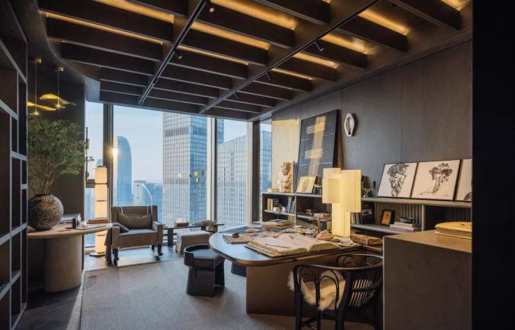 恰如安放两种生活方式的艺术容器——它以两种截然不同的空间叙事,解构顶豪的本质:当艺术成为空间的肌理,生活就是一场与自我、与时代的对话。约21米的横向面宽瞬间撑开了城市画框,钱塘江景得以毫无保留的尽情展示,约180方的会客空间则是业主能够自行定义的海绵空间,足够根据其喜好任意布置。