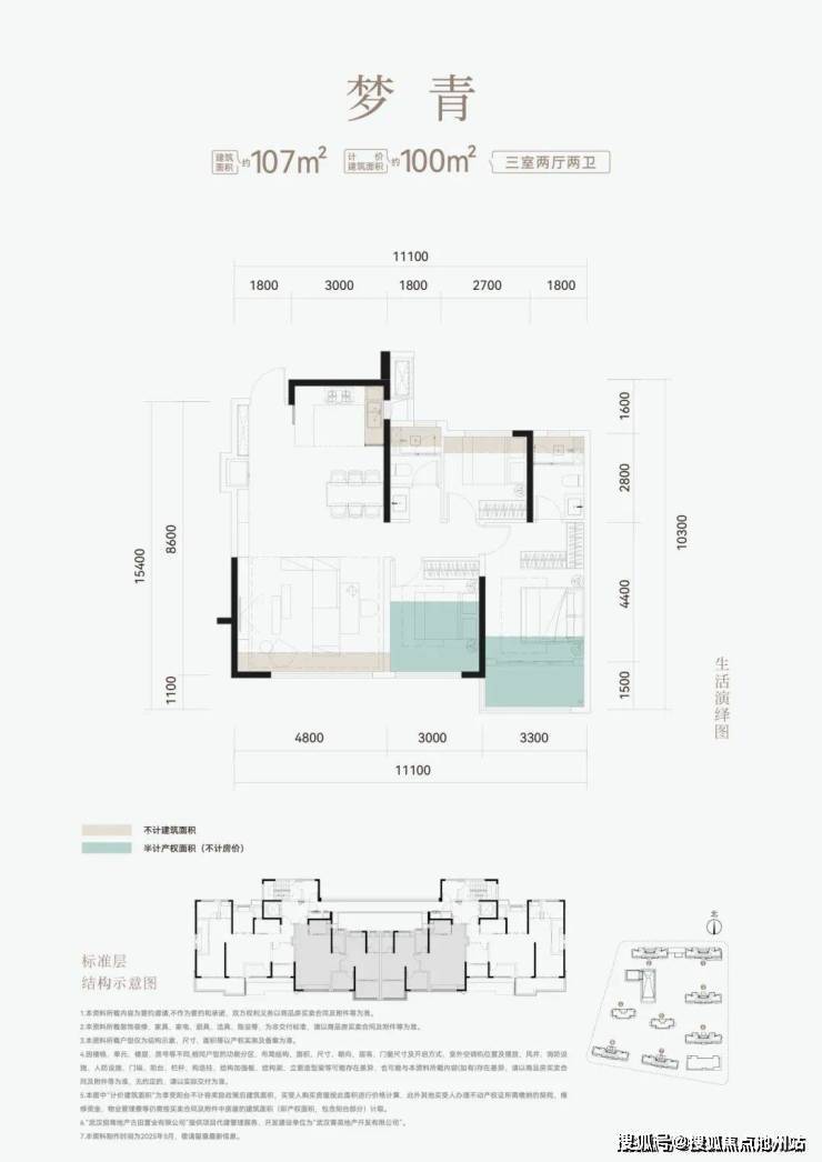 南向面宽达约11.1米,4.8米的大横厅、超过3米开间的卧室,光谷尖子生。
