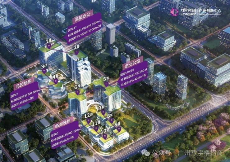 项目位于广州市白云湖数字科技城启动区,计容建筑面积约13.5万平方米,由12栋单体组成,含括临湖独栋、企业公馆、高层办公、花园独栋等多种建筑形态。