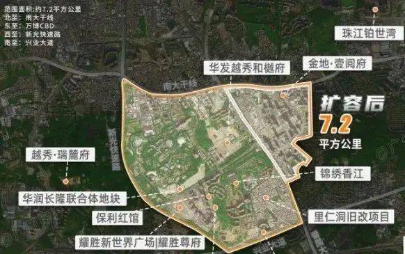 扩容至近五倍,规模赶超6.19平方公里的珠江新城;