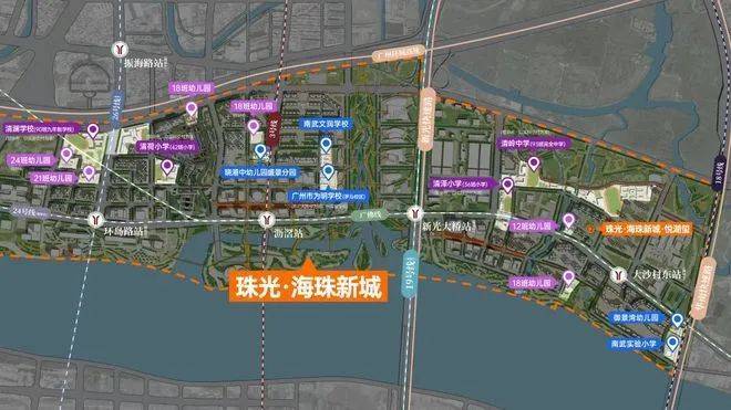 在教育方面,珠光海珠新城西南侧规划有一所12班幼儿园,北面规划有一所初中和一所完全高中,此外还计划在一公里范围内新增一所幼儿园和两所小学,形成完整的15年全龄段教育体系。周边已有的教育资源包括珠江御景湾幼儿园和南武实验小学。