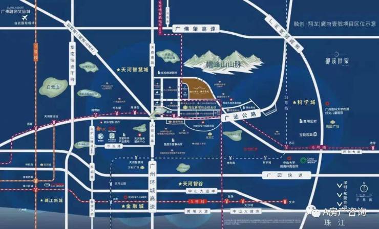 项目位于城央核心地段,天河智慧城旁一步天河、6号线地铁口旁,是集商业、教育、居住、生态环境等各方面配套于一体的伴山宜居城市体。