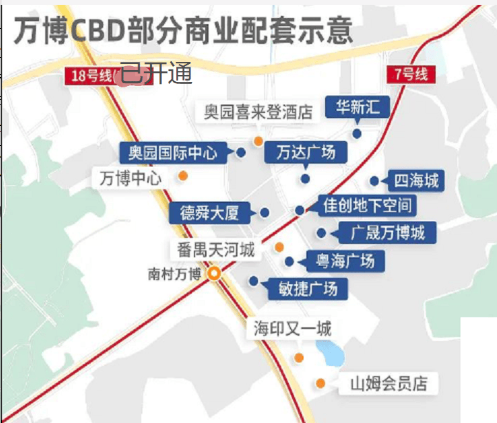 ②万博商圈:万博CBD已集结番禺万达广场、粤海天河城等10个商业体,以160万方体量超越天河路商圈!
