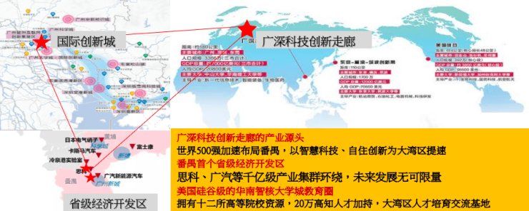广深科技创新走廊的产业源头,番禺首个省级经济开发区,美国硅谷级的华南智核大学城教育圈。