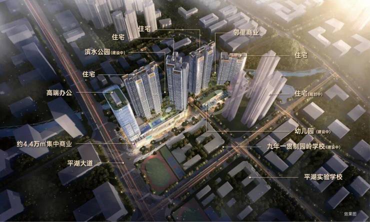以超越之姿,匠著建面约47万㎡综合活力社区,汇聚品质住宅、邻里商业、高端商务、滨水绿地公园,等多元业态,重塑平湖人居新封面。