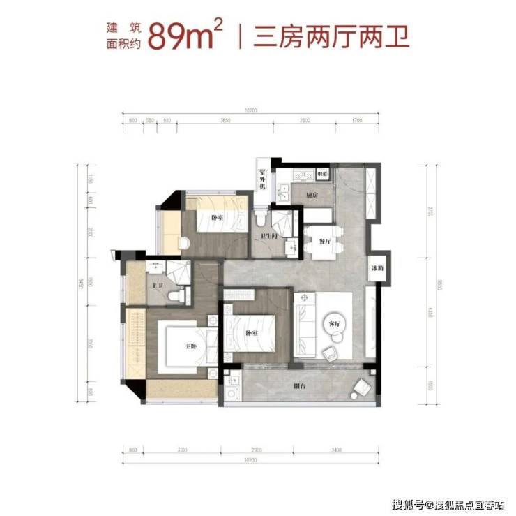 建筑面积约89㎡3房2卫