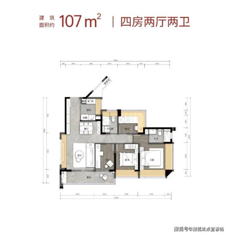 建筑面积约107㎡4房2卫