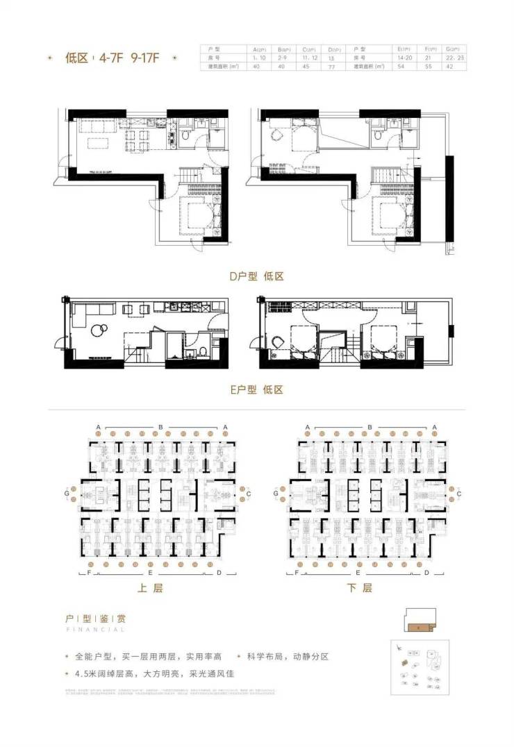 御公馆采用国际一线品牌精装,打造优雅与格调兼具的居住享受。建面约40-110㎡的轻奢全能户型,满足城市菁英人物多元需求,也适合高净值客户将其打造为私人会客厅。4.5米的层高营造非凡空间格局,全景落地窗赋予超宽采光面,让居民尽情享受城市美景,体验高品质生活。