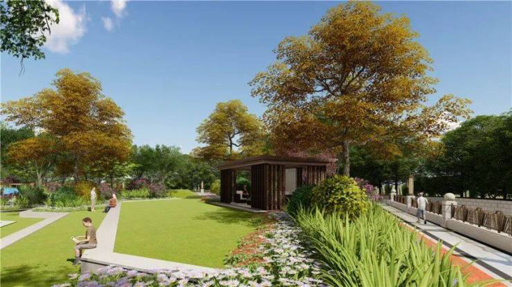 37% 的绿化率让整个小区被香樟、秋枫覆盖,中央的龙湖水景旁修了环形步道