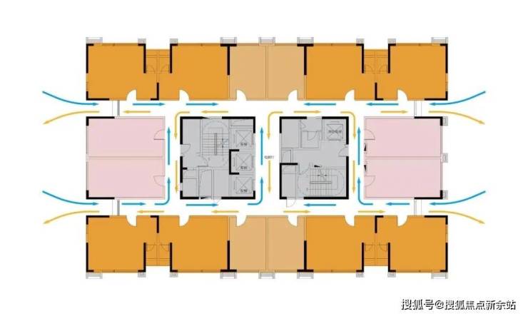 摒弃传统单过道,采用双环通走廊,极大提升通风采光