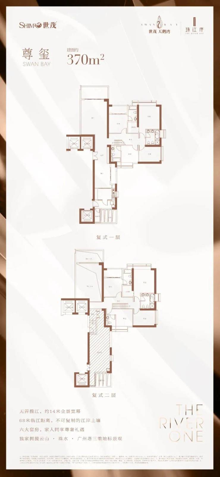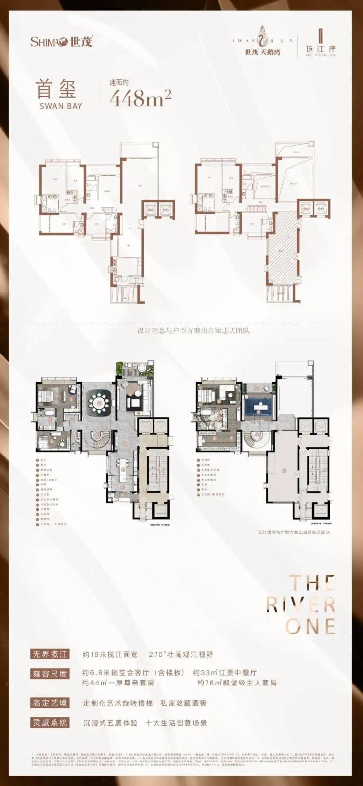 世茂天鹅湾,融汇世茂三十余载奢宅打造经验打造的广州首座滨江人文顶豪奢宅。 地处广州城芯地段,坐拥海珠创新湾千亿规划利好,占据不可复制的一线江景资源,享超及°环幕珠江美景,11席绝版复式,敬献传奇大家族。