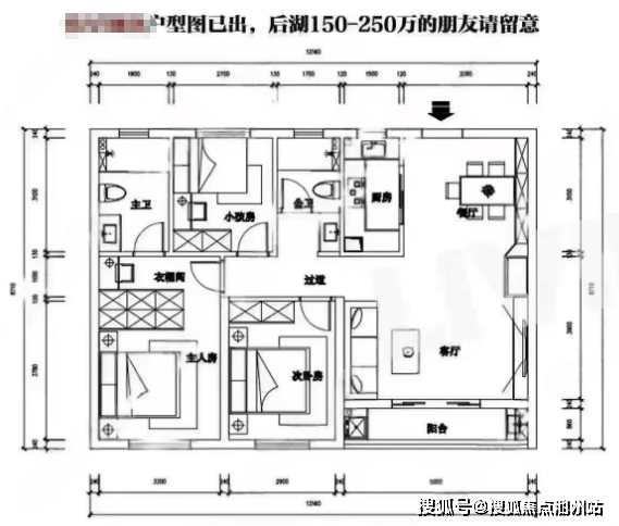 说起来,该项目确实是整个后湖片区少有的准四代,它的产品设计方面完全碾压老三代,容积率约2.5,目前已知的户型面积约105-142平,预计首开1、2号楼建面约105-125平房源,均为3梯4户,且中间一部电梯采取双开门,这样就能确保所有户型都可以实现独梯独户的居住体验。