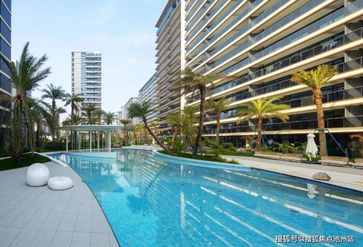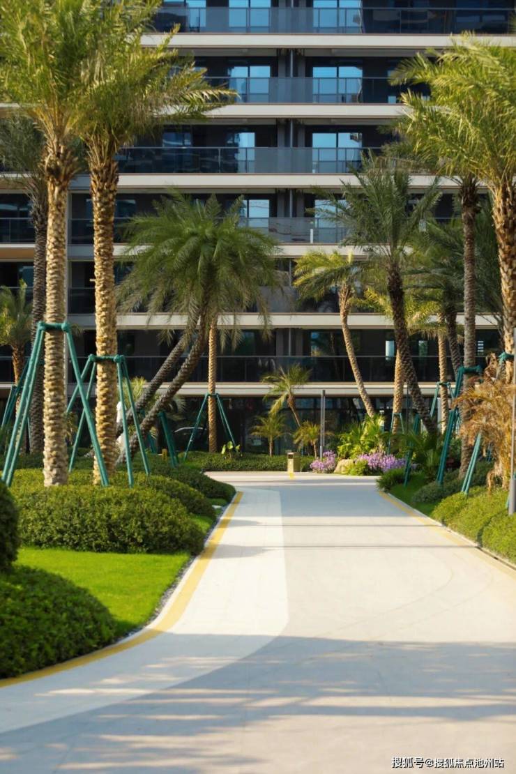 在这条景观主轴上,房开竟然种了104棵海枣树,以不同的造型,围绕水系布局,将热带风情进行到底。