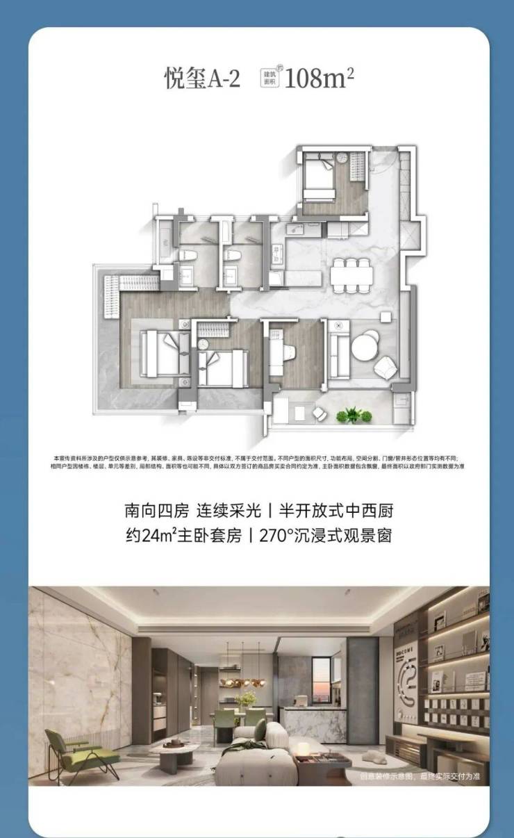 面积段:108-300㎡全南向四房,最小108㎡做到四房,实用率95%;