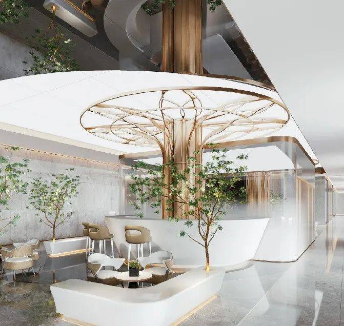 ①艺术设计:借鉴吉隆坡市中心设计、融合K11创新特色,选 用 香槟色、流线线条、金属大理石材质等元素,打造流金岁月风 格