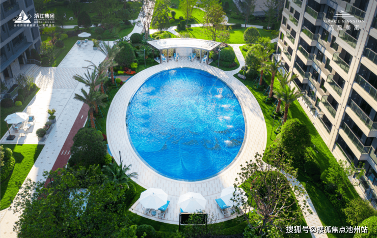 3、滨江标志性泳池及棕榈树等高出品