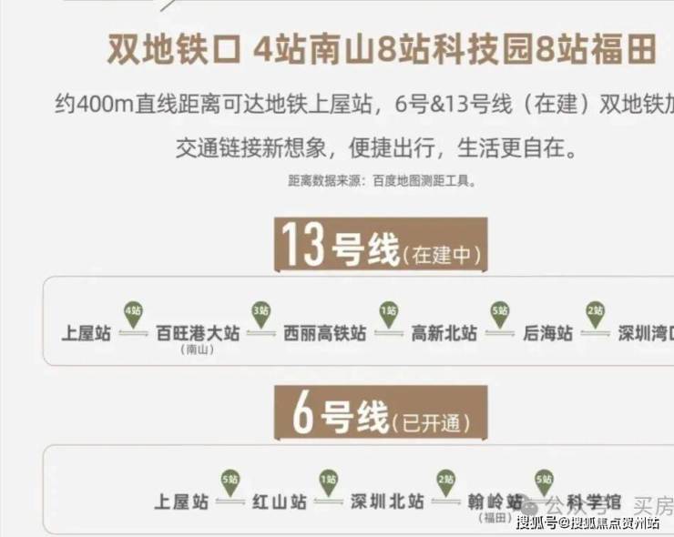 交通配套: 项目距离6/13号线(在建中)上屋站约400m,步行5分钟可到达,6号线5站到红山,6站到深圳北站,8站到福田(翰岭站),也可以1站到石岩中心换乘深大城际,2站可到机场东;13号线4站南山、8站科技园(高新北站)。