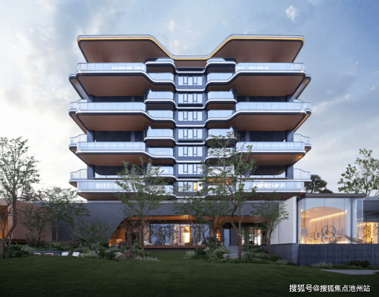 建筑立面以灵动的白色金属线条勾勒出悬浮晶体般的简约形态,精选铝板与全景落地玻璃幕墙搭配,加上流线型曲面转角工艺,在光影变幻中演绎出丝绸般的建筑肌理,成就当代极简主义的美学典范。