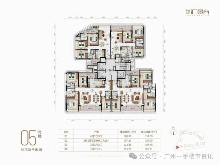 侨鑫保利汇景台侨鑫保利汇景台住宅主要在售1-7栋和11-14栋的户型,除了12栋还未推售以外,其余8-10栋则已经基本全部售罄,现在项目主要在售户型为123-290㎡的三至五房产品,以及13栋还有少量131㎡和142㎡的稀缺南向三房户型。