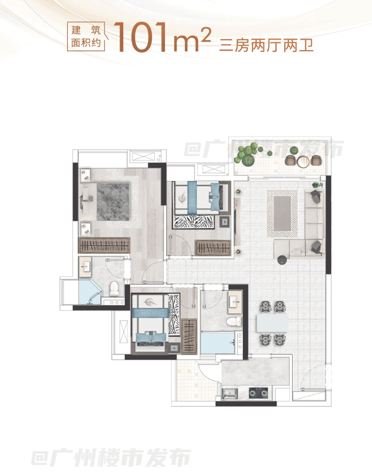 如果是偏刚改型的家庭,不妨考虑下海珠里的三房户型。
