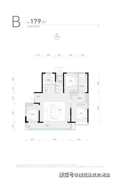 洋房产品为建面约147㎡三室,整体户型全明通透,采取独立玄关设计。南向三开间,约11.45米的面宽,为室内带来充沛的阳光。客厅和南向次卧外接约7.8米通阳台,无论日常晾晒、莳花弄草还是品茶休闲,都能轻松安放。