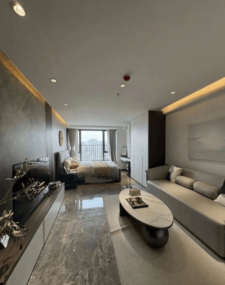 而这个盘最让我意外的,是公寓里少有的通天燃气配置。市面上多数公寓只能用电做饭,长期下来不仅电费高,还少了点“家的感觉”。但明月豪庭做到了燃气入户,加上3米的层高,搭配35-101平方的1-3房住宅式户型,推开样板间门时完全没了传统公寓的压抑感。尤其是65平方的两房户型,客厅带阳台、厨房预留了冰箱位,自住过渡的话,基本能满足小家庭的日常需求。