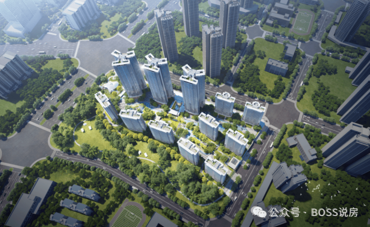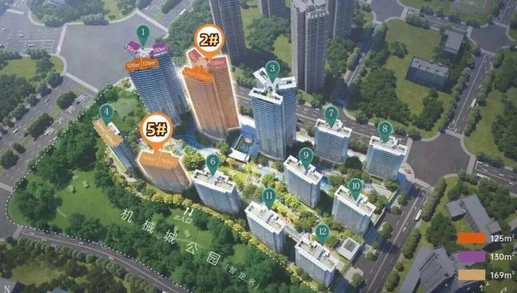 公园绿地:周边 3km 范围内有 91 个公园,距离最近的仅 239m,小区南侧和西侧规划了与小区体量相当的公园绿地(机械城公园),此外还有街角公园,形成绿色屏障,可有效降噪降尘