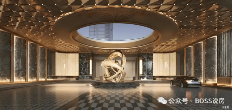 对标星级酒店标准,定制双动线精装公区,人行则艺术门厅进入首层挑高大堂,地下车库则以豪宅标配星空顶,景观地下光厅设计,打造步步生辉的入户空间。