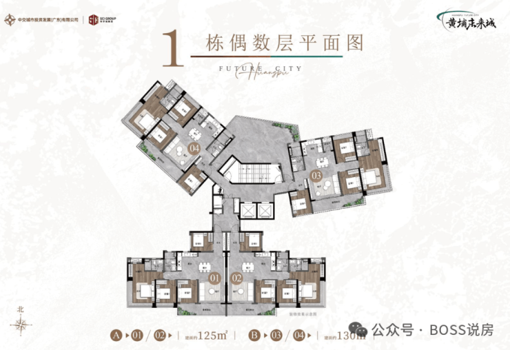 1-3栋,是高层住宅,主推建面约120-125㎡、约132-135㎡产品;