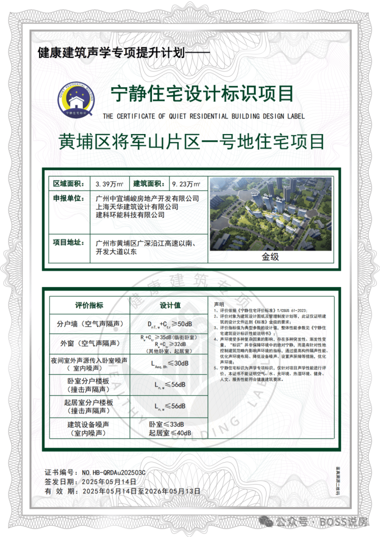 中国城市科学研究会颁发的宁静住宅设计标识项目金奖