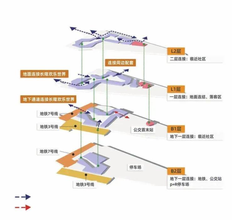 通过创新性的规划,耀胜新世界将高端住宅、商务办公、艺术商业、轨道交通有机整合,出行的从容更添生活质感,三条轨道(地铁3/7号线+佛莞城际)交通无缝衔接,业主通过专属连廊即可“无风雨日晒”直达地铁站,无缝接驳长隆乐园,享受与世界级商圈同频的热情、活力、多元,构建"轨交+商业+文旅+住宅"的立体生活空间,树起广州TOD综合体开发的新标杆。