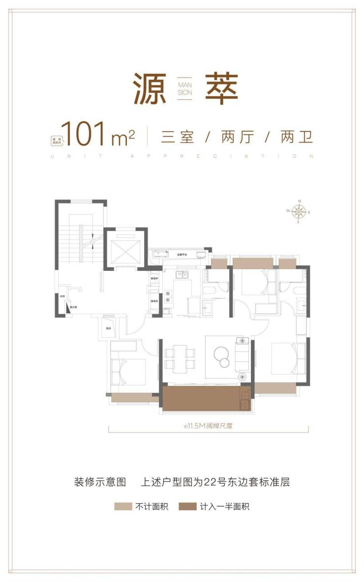 ⋄101㎡PLUS越阶三房:约5.3M阔尺横厅/约11.5M南向面宽,宽纳聚会欢愉;