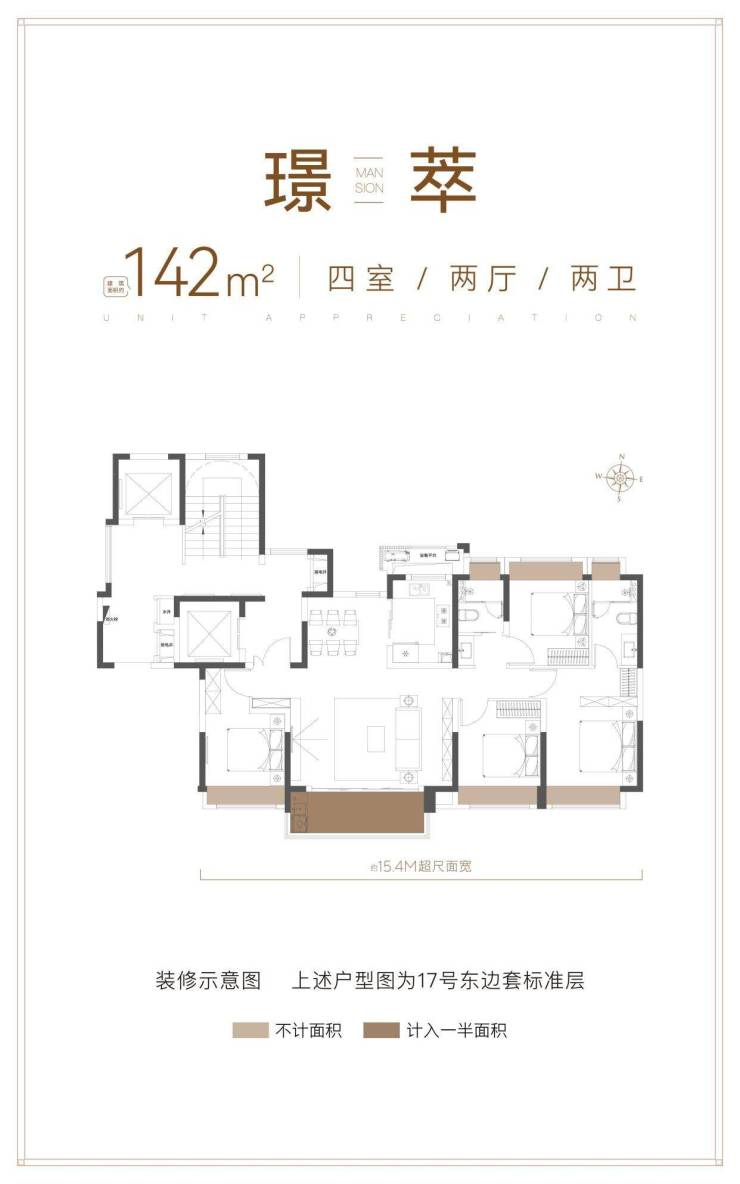 2⃣建面约142㎡ 四房两厅两卫