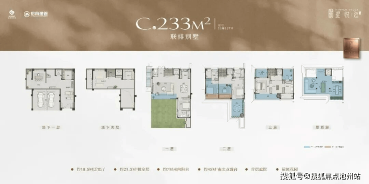 产品类型建筑面积核心卖点精装洋房143㎡三开间朝南,LDKB一体化设计,主卧套房带270°转角飘窗联排别墅200-233㎡地上三层+地下空间,最大可拓展至430㎡,私家花园+星空露台