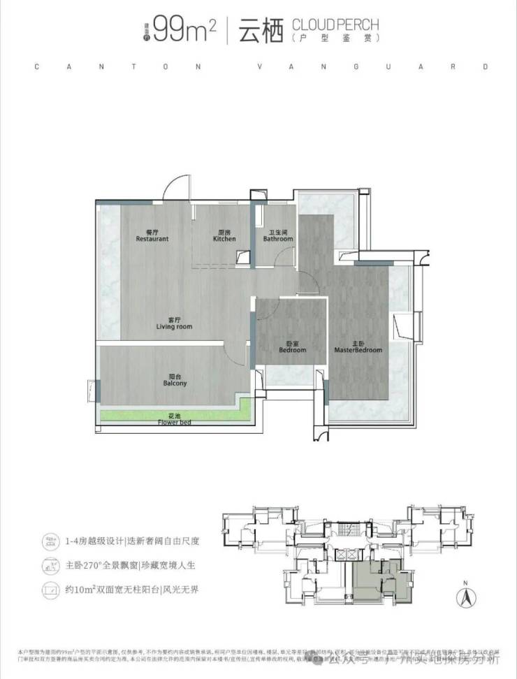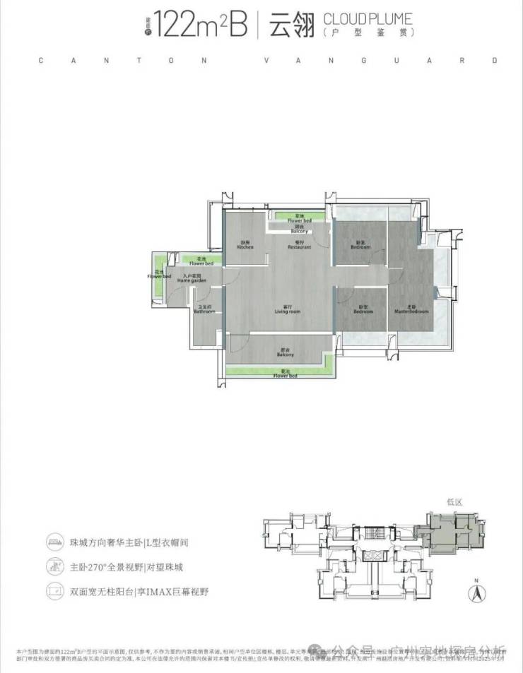 5、产品创新,作为越秀区首个超新规项目,户型使用率超100%-120%,全南向设计,配备无柱阳台、入户花园,空间利用率高,最小户型98㎡可灵活切换1-4房,满足不同家庭需求。