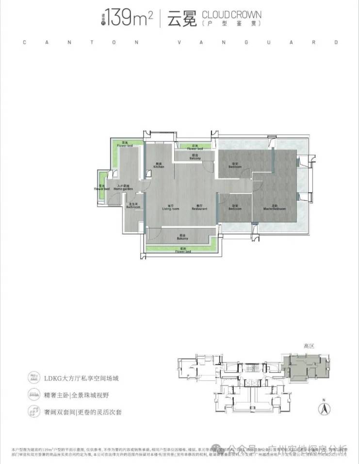 139㎡天际大平层4房3卫,仅15套,配置占据东边梯腿 23层以上270°环幕视野尽揽珠江新城繁华。