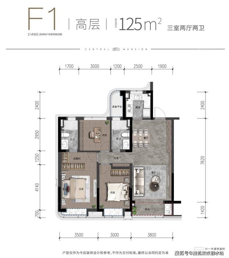 武汉城建·融创|云起府 平层户型·建面/125㎡