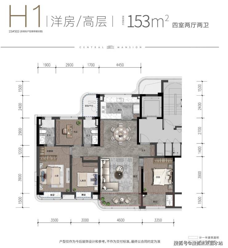 武汉城建·融创|云起府 平层户型·建面/153㎡