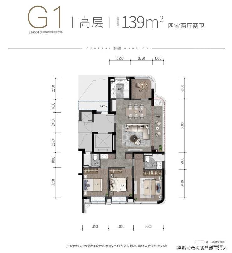 武汉城建·融创|云起府 平层户型·建面/139㎡
