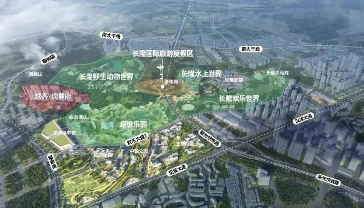 万博CBD:广州“中国500强企业”云集,汉溪长隆国际旅游目的地汇聚超千万年客流。
