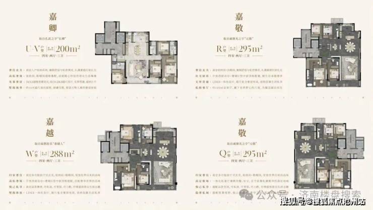 从楼座分布图来看,4号楼、6号楼、8号楼为四代宅,户型为230平、240平、290平。