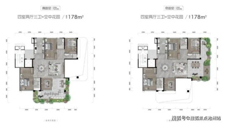 ▲ 建面约178㎡ 4室2厅3卫+空中花园