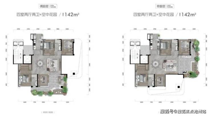 ▲ 建面约142㎡ 4室2厅2卫+空中花园
