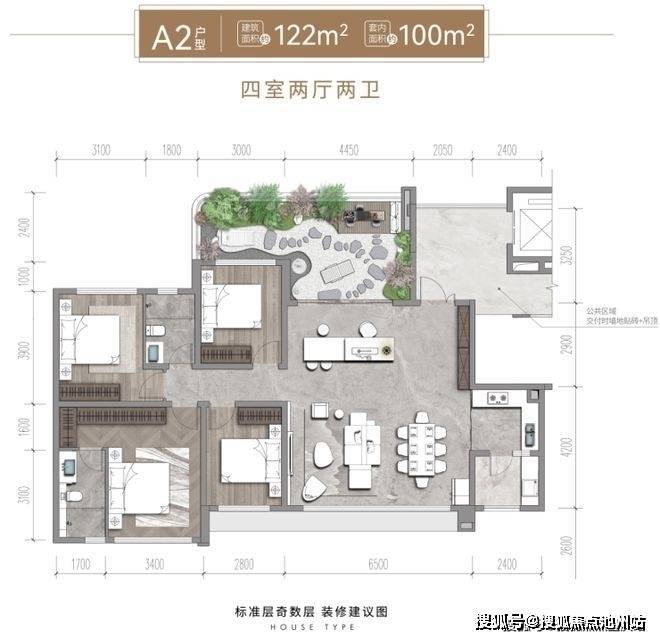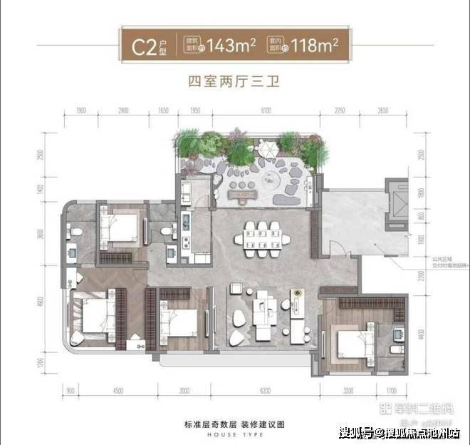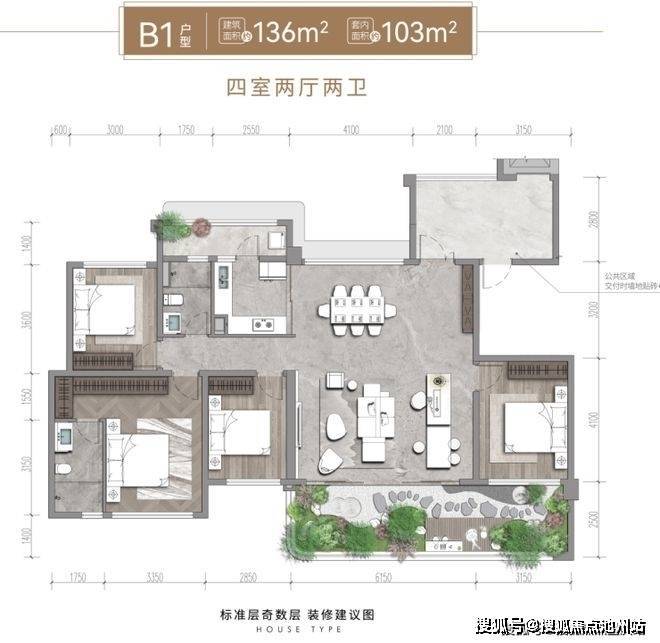 (面积)建面122-136㎡ 四房双卫